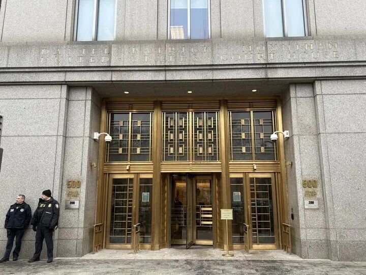 这是1月5日在纽约拍摄的手机拍摄的委内瑞拉总统马杜罗出庭的美国纽约南区地方法院外观。图片提供:新华社记者张凤国。
