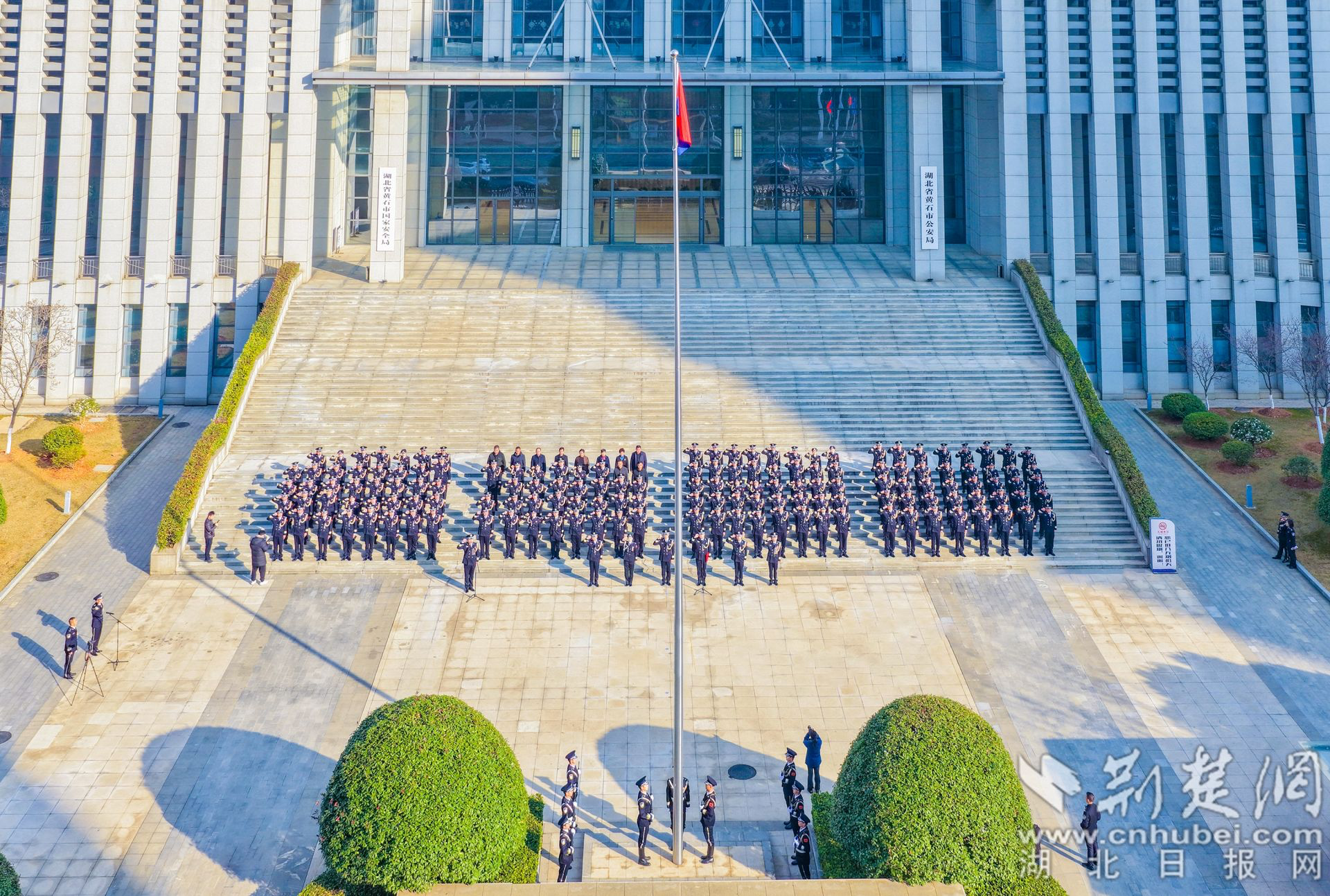 上午9时30分,黄市公安局业务科技大楼前广场上气氛肃穆、肃穆。晨光中,180名身着制服的警察昂首挺胸,迎接公安队伍神圣仪式——警察升旗仪式。他们举行了最隆重的仪式,以表彰忠诚和奉献,凝聚前进的力量。