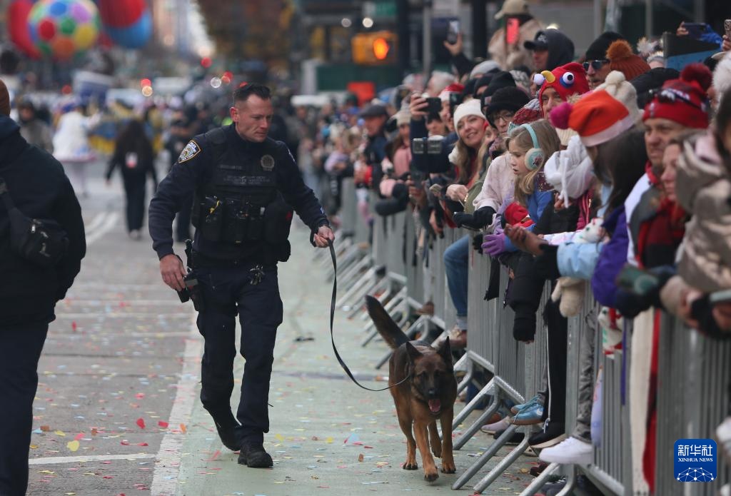 11月27日,警察带着警犬监视纽约感恩节游行。针对美国近期发生的安全事件,纽约市在感恩节游行地区设置了数百个检查站和隔离区,部署了数千名警察,并使用无人机加强安全措施。新华社记者 张凤国 供图 分页 11月27日,美国纽约感恩节游行中,警察急救车巡逻。针对美国近期发生的安全事件,纽约市在感恩节游行地区设置了数百个检查站和隔离区,部署了数千名警察,并使用无人机加强安全措施。新华社供图 张凤国 分页 11月27日,警察骑着自行车在纽约感恩节游行中巡逻。针对近期美国发生的安全事件随后,纽约市在感恩节游行地区设置了数百个检查站和隔离区,部署了数千名警察,并使用无人机加强安全措施。新华社记者 张凤国 摄 分页 11月27日,美国纽约感恩节大游行中,警察执勤。针对美国近期发生的安全事件,纽约市在感恩节游行地区设置了数百个检查站和隔离区,部署了数千名警察,并使用无人机加强安全措施。新华社记者 张凤国 摄 分页 11月27日,美国纽约感恩节大游行中,警察执勤。针对美国近期发生的安全事件,纽约市在感恩节游行地区设置了数百个检查站和隔离区,部署了数千名警察并使用无人机加强安全措施。图片提供:新华社记者张凤国。