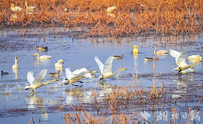 1月10日上午,记者在武汉市蔡甸区神湖湿地目睹大量候鸟在湖面上来回穿梭,形成壮观的“鸟潮”。据神狐湿地自然保护区管理局调查结果显示,1月7日,该地区共观测到越冬候鸟108486只,创下历史新纪录。其中水禽41种107609只,其中国家一级保护鸟类鹳125种、鹤26种。 (湖北日报记者 朱西勇 摄) 一只小天鹅在奔跑。两只白鹤沉入湖中。两只鹳鸟沉入湖中。 1月10日上午,记者在武汉市蔡甸区神湖湿地目睹大量候鸟在湖面上来回穿梭,形成“鸟潮”。 1月10日上午,记者在中国深湖湿地湖边目睹大量小鸡嬉戏。武汉市爱店区。 1月10日上午,记者在武汉市蔡甸区神狐湿地湖中目睹大量候鸟嬉戏。 1月10日上午,记者在武汉市蔡甸区神湖湿地目睹大量候鸟在湖面上来回穿梭,形成“鸟潮”。 1月10日上午,记者在武汉市蔡甸区神狐湿地湖边看到大量雏鸟在玩耍。