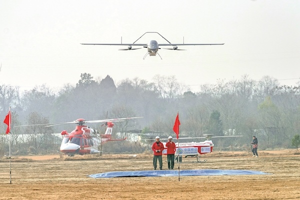 12月11日,“通信使命2025”全国应对低温雨雪霜冻灾害应急通信演练在武汉市黄陂区举行。此次培训由工业和信息化部、湖北省人民政府联合主办。此次演习的一大亮点是多种新型应急通信设备的亮相。其中,可长时间悬停、无线电波到达范围较广的系留无人机,以及可携带重型通信设备的大型无人机,将与卫星通信系统连接,打造空、天、地相结合的应急通信网络。楚天都市报吉木报记者 肖浩 莎兰 摄