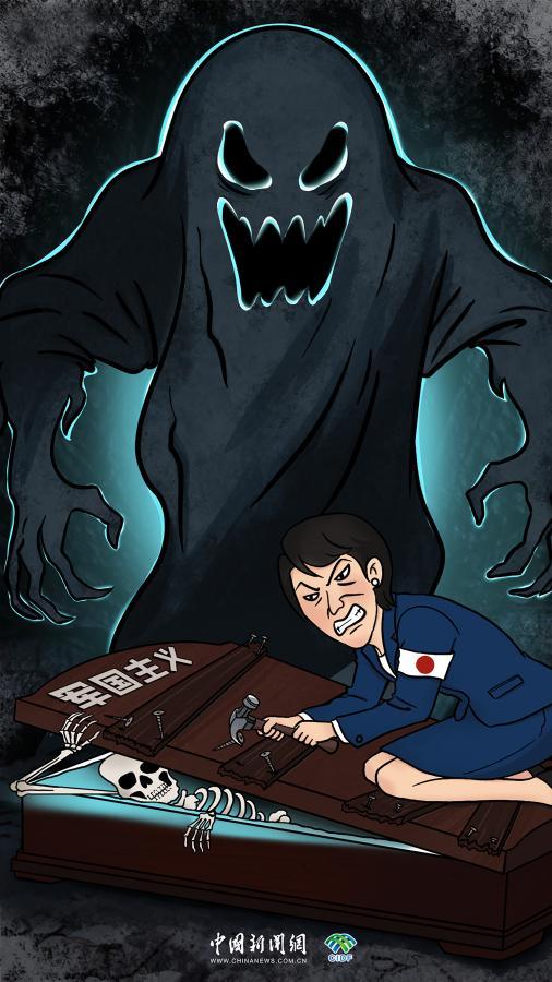 高市早苗试图打开军国主义的棺材,解放被历史遗弃的灵魂。这种复兴军国主义的企图是对二战胜利成果的公然践踏,是对人类和平的严重威胁。她本应是一只试图控制坦克的螳螂,结果却揭示了一个偏离故事进程的奇幻幻象。